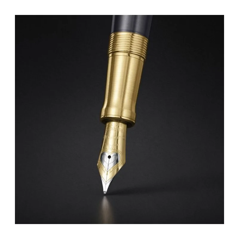Εξοπλισμένη με χειροποίητη μύτη από μασίφ χρυσό 18Κ (Medium), προσφέρει μια απαράμιλλη εμπειρία γραφής, συνδυάζοντας την κλασική κληρονομιά της Parker με τη σύγχρονη, επαγγελματική αισθητική.
