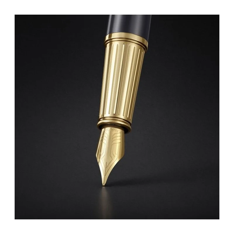 Εξοπλισμένη με χειροποίητη μύτη από μασίφ χρυσό 18Κ (Medium), προσφέρει μια απαράμιλλη εμπειρία γραφής, συνδυάζοντας την κλασική κληρονομιά της Parker με τη σύγχρονη, επαγγελματική αισθητική.