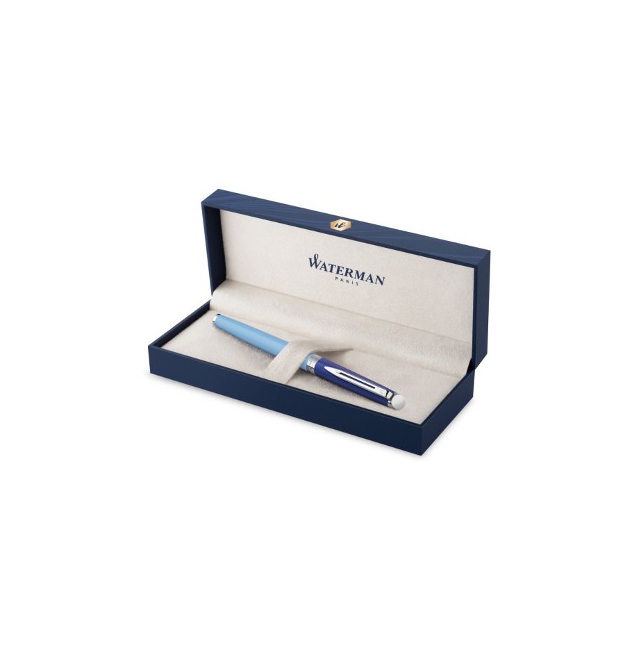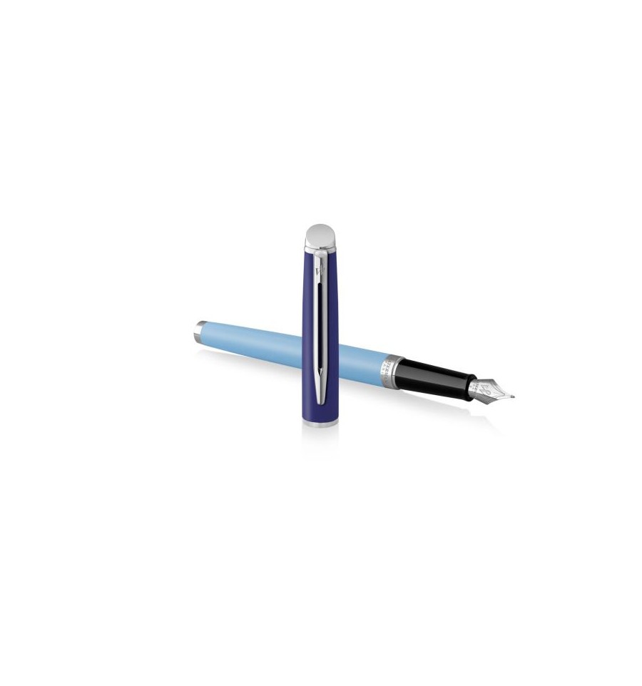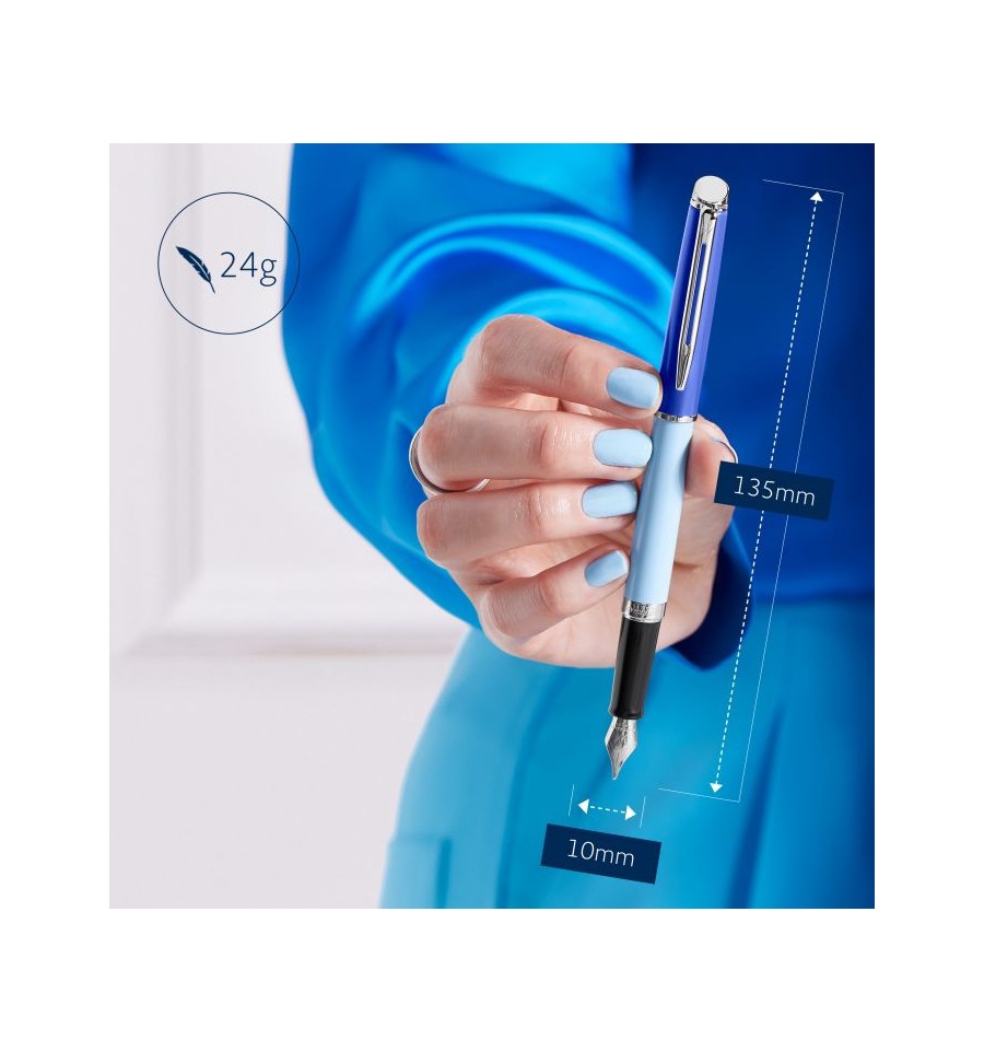 Inspired by this season’s bold colour-blocking style, a statement fountain/rollerball/ballpoint pen with a stylish finish and slim silhouette • FINISH : Blue Palladium Trim • WRITING TYPE : Fountain / Rollerball / Ballpoint pen • NIB : Available in Fine or Medium • TIP : Available in Fine or Medium • INK COLOUR : Blue or Black • MATERIALS – BARREL : Light Blue Lacquer on Brass • MATERIALS – CAP : Dark Blue Lacquer • MATERIALS – NIB : Stainless Steel