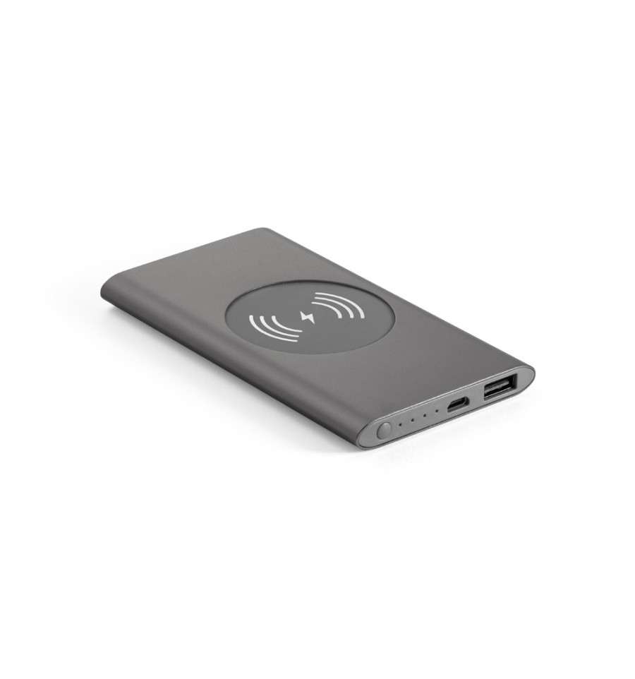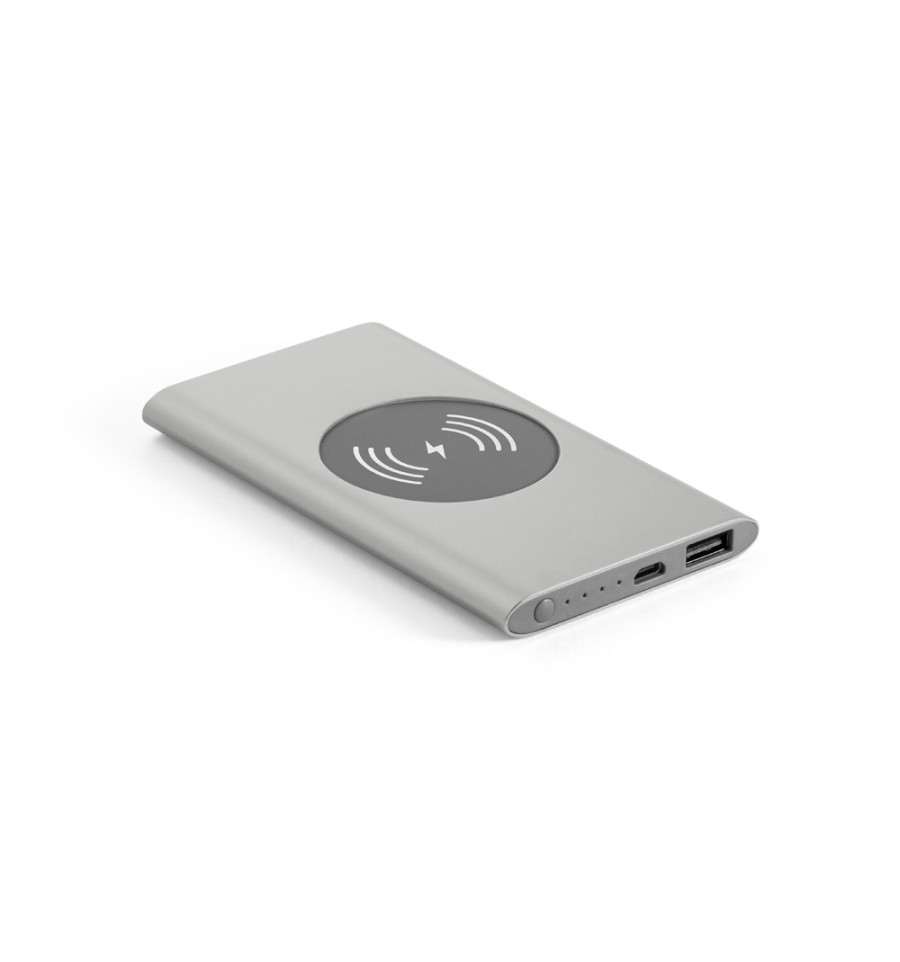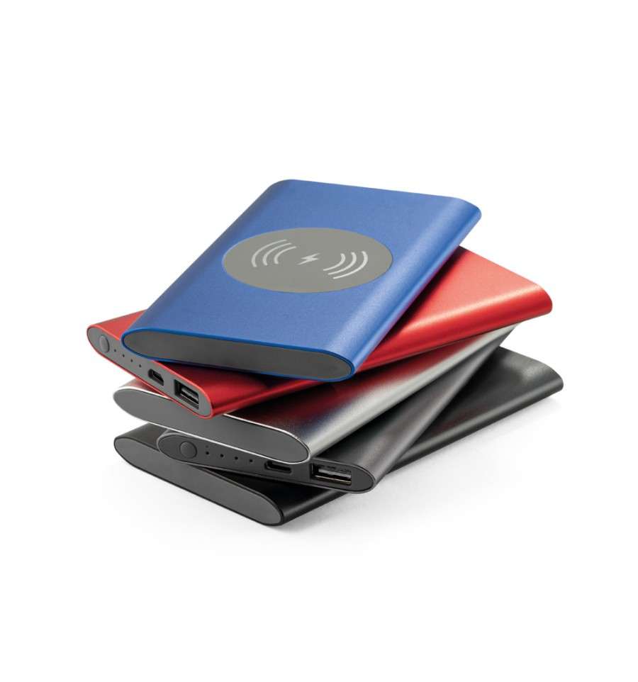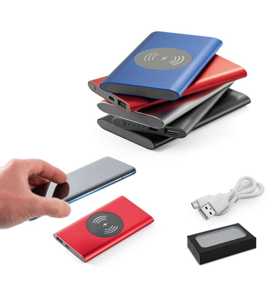Φορητή μπαταρία αλουμινίου και ασύρματος φορτιστής. Περιέχει μπαταρία πολυμερούς λιθίου. Περιέχει χωρητικότητα 4.000 mAh και διάρκεια ζωής ≥ 500 κύκλων. Είσοδος 5V/2A και έξοδος 5V/2A, με ένδειξη φόρτισης LED. Πκαλώδιο USB για φόρτιση. Διατίθεται σε συσκευασία δώρου. 123 x 70 x 10