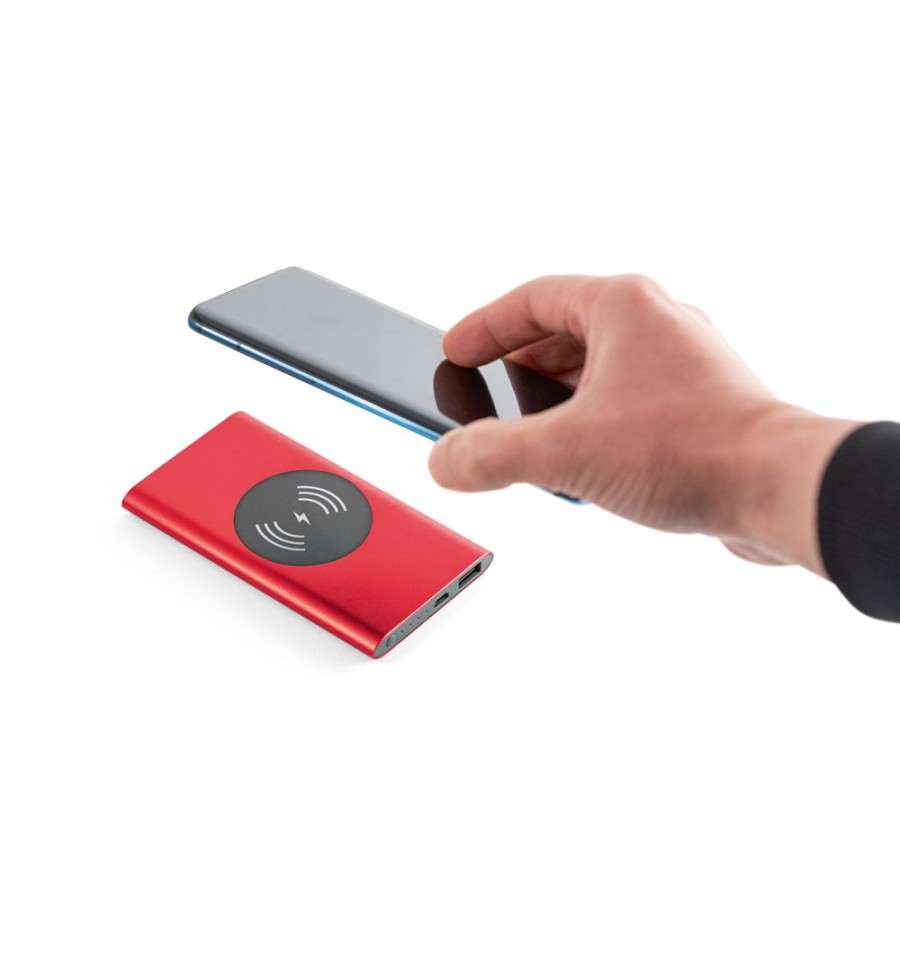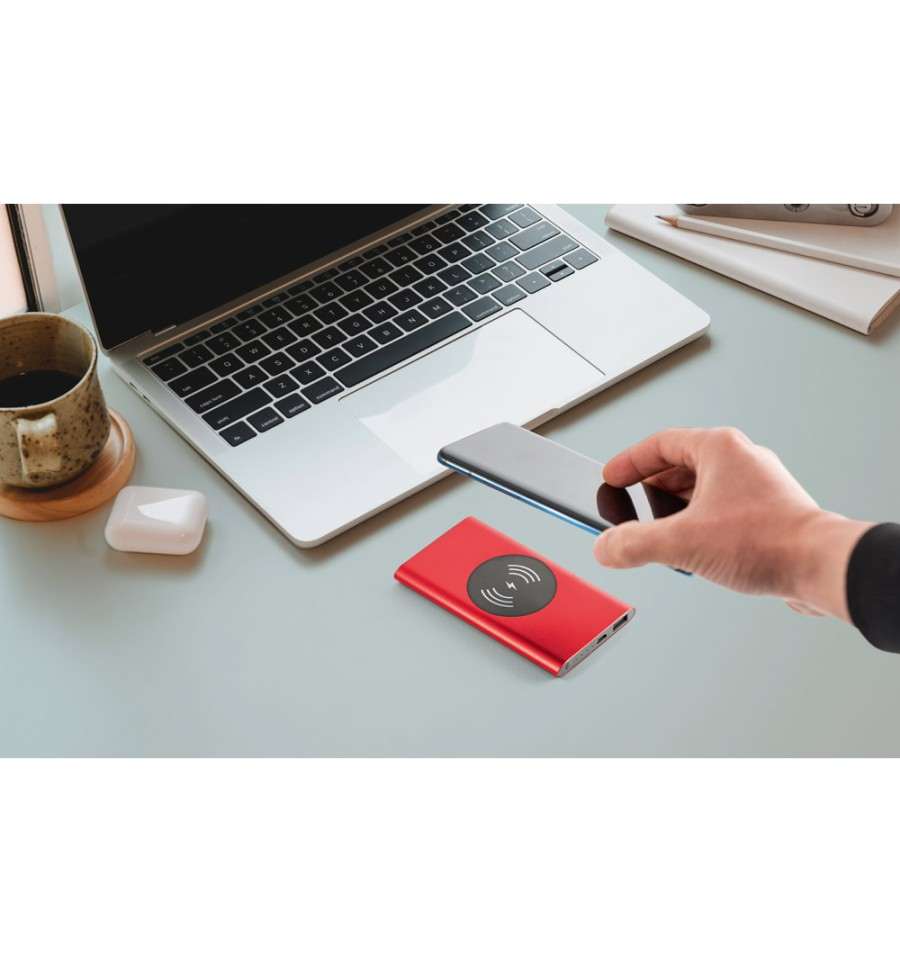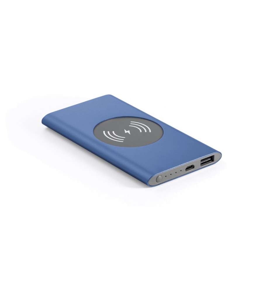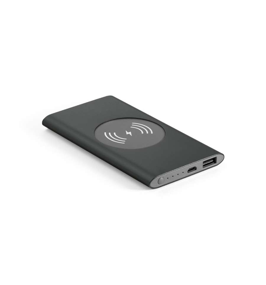 Φορητή μπαταρία αλουμινίου και ασύρματος φορτιστής. Περιέχει μπαταρία πολυμερούς λιθίου. Περιέχει χωρητικότητα 4.000 mAh και διάρκεια ζωής ≥ 500 κύκλων. Είσοδος 5V/2A και έξοδος 5V/2A, με ένδειξη φόρτισης LED. Πκαλώδιο USB για φόρτιση. Διατίθεται σε συσκευασία δώρου. 123 x 70 x 10